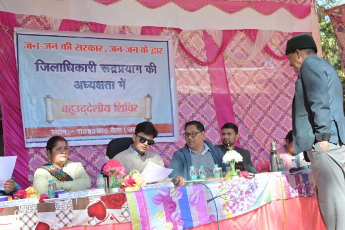 मा० मुख्यमंत्री उत्तराखण्ड के निर्देशानुसार प्रदेश में संचालित “जन-जन की सरकार, जन-जन के द्वार” अभियान के अंतर्गत जनपद रुद्रप्रयाग की 27 न्याय पंचायतों में बहुउद्देशीय शिविरों का आयोजन किया जा रहा है। इसी क्रम में मंगलवार को राजकीय इंटर कॉलेज, तैला (तहसील जखोली) में बहुउद्देशीय शिविर/ प्रशासन गाँव की ओर कार्यक्रम का आयोजन किया गया।