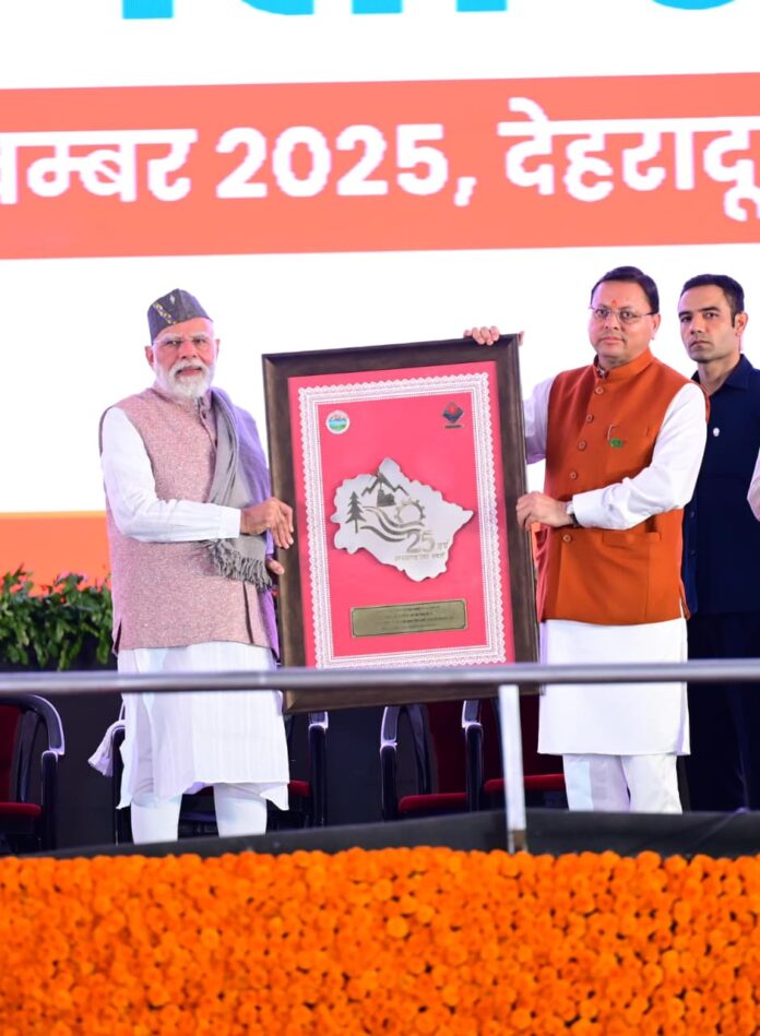 उत्तराखंड राज्य स्थापना दिवस, रजत जयंती पर्व के मुख्य समारोह में लिए रविवार को देहरादून पहुंचे प्रधानमंत्री श्री नरेंद्र मोदी जी ने 8260 करोड़ रुपए की विकास परियोजनाओं का शिलान्यास – लोकार्पण किया। उन्होने उत्तराखंड की गत 25 वर्षों की उपलब्धियों की सराहना करते हुए, अगले 25 वर्षो के लिए रोडमैप के साथ आगे बढ़ने के लिए प्रेरित किया।