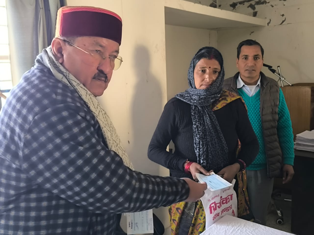 रूद्रप्रयाग।जखोली तहसील परिसर में रुद्रप्रयाग विधायक भरत सिंह चौधरी ने विधानसभा क्षेत्र रुद्रप्रयाग के जरूरतमंद गरीब लोगों को मुख्यमंत्री विवेकाधीन कोष के चैक वितरित किये। विधानसभा क्षेत्र रुद्रप्रयाग में मुख्यमंत्री विवेकाधीन कोष से 23.30 लाख धनराशि के 327 चैक स्वीकृत किये गए है। जिसमे जखोली तहसील में 146 चैक स्वीकृत थे। जिसमें 54 लाभार्थियों को चैक वितरण किये गए। तीनों तहसील रुद्रप्रयाग, बसुकेदार एवं जखोली तहसील में जो लाभार्थी थे उनको चैक वितरण किया गया है।इस अवसर पर विधायक भरत सिंह चौधरी ने कहा कि जिन जरूरतमंद लोगों ने आर्थिक सहायता के लिये आवेदन दिया।