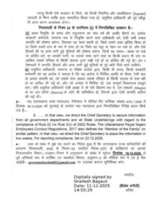 : उत्तराखंड के सभी अधिकारियों, कर्मचारियों को अपनी और परिवार की सभी चल और अचल संपत्ति का ब्योरा देना होगा। 15 दिसंबर तक सभी विभागाध्यक्षों, सचिवों को अपने अधीन अधिकारियों और कर्मचारियों की संपत्ति का ब्योरा कार्मिक विभाग को उपलब्ध कराना होगा। गुरुवार को सचिव कार्मिक शैलेश बगौली ने इसके आदेश जारी किए।